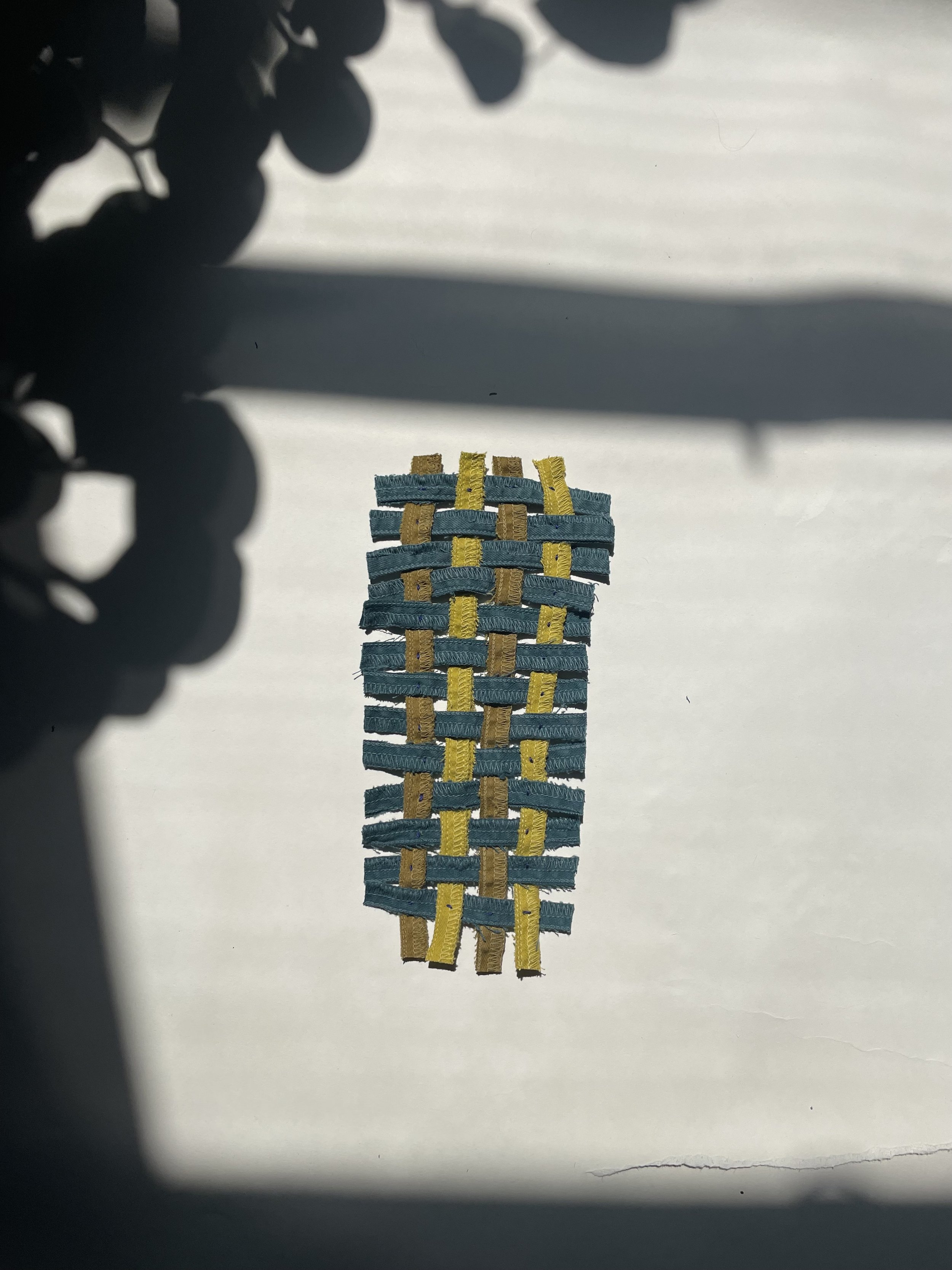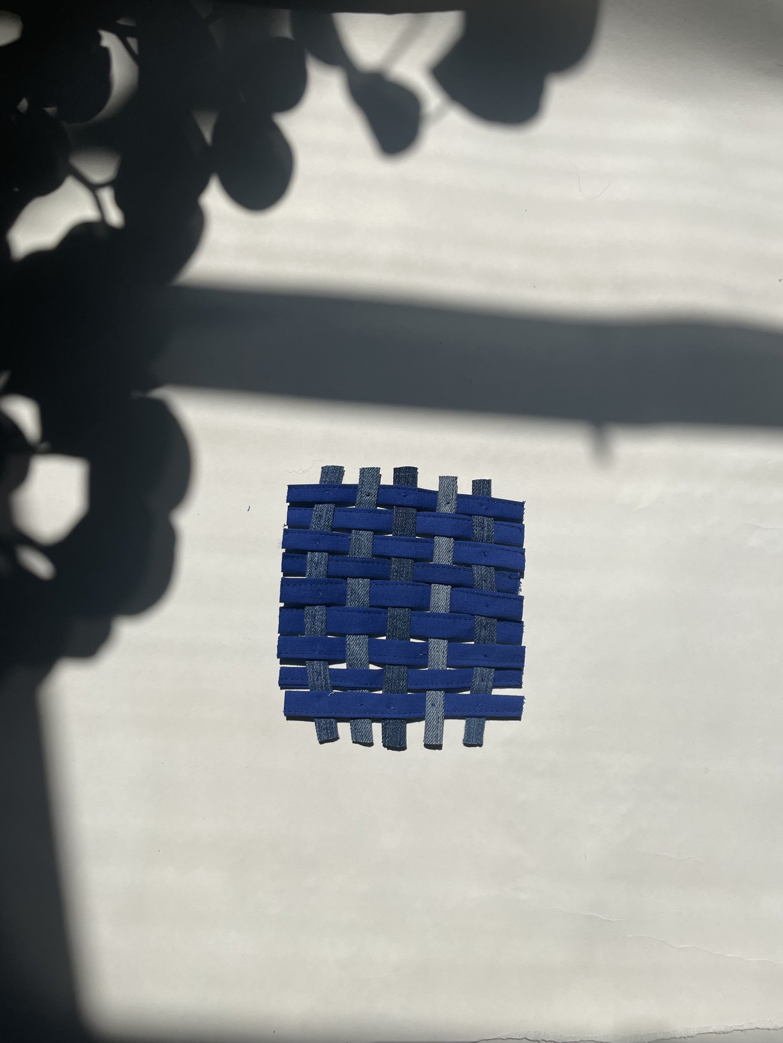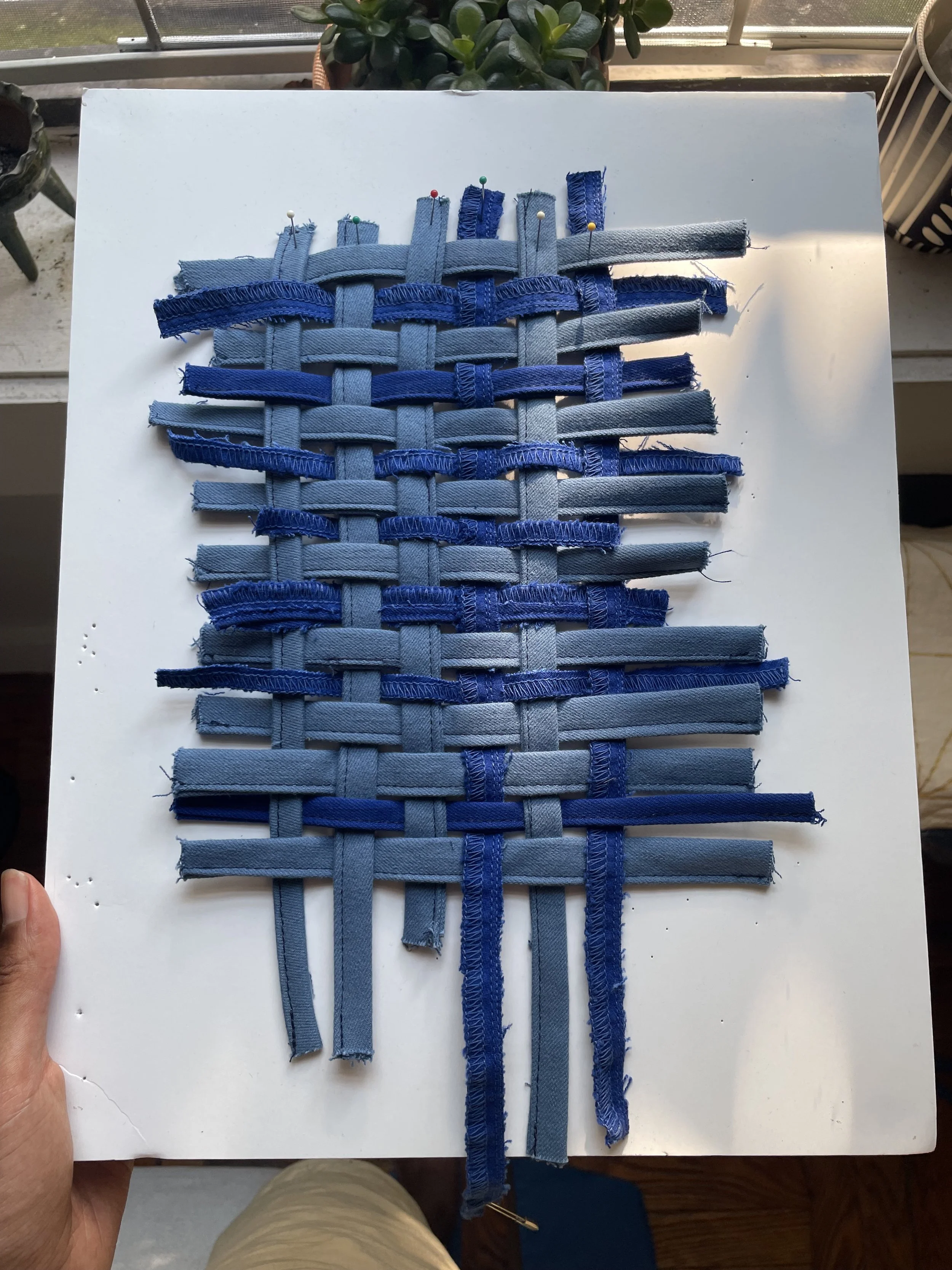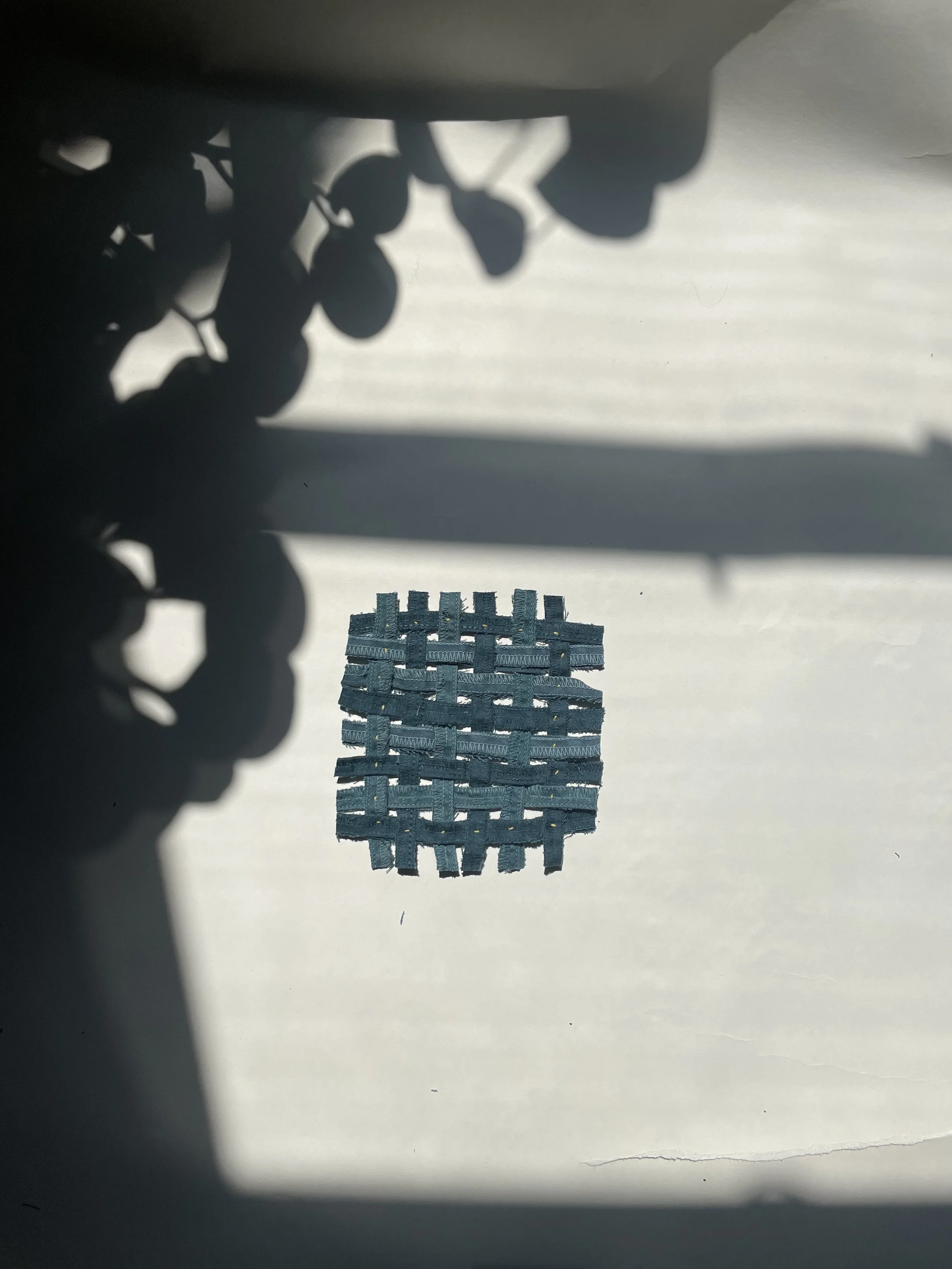 An exploration in which weaving is used as a method for creating textiles and garments from reclaimed deconstructed jeans.